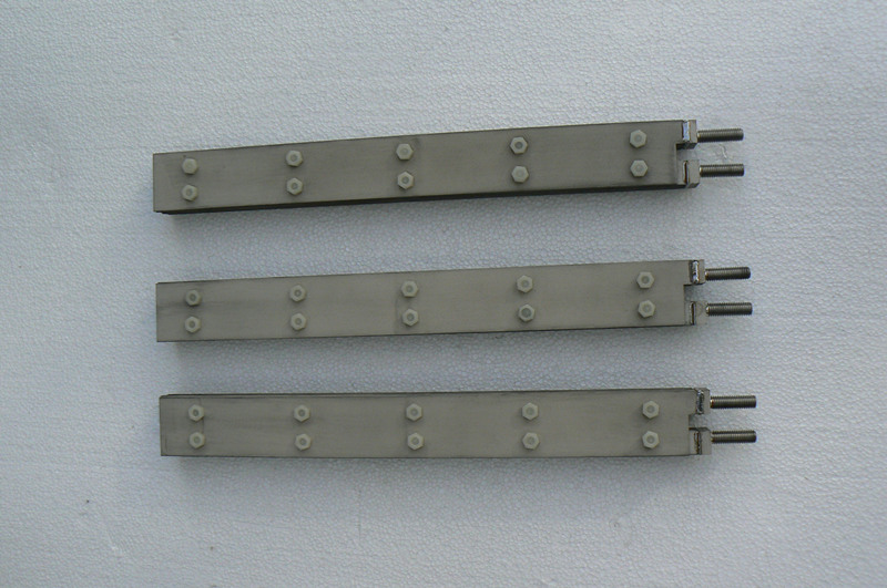 與非惰性陽極例如石墨相比,鈦陽極的優點在于它能在使用壽命之內,保持穩定的正極與負極間的距離(電極之間距離)。石墨陽極在使用中會逐漸溶解,導致電極間距離增大,而惰性鈦陽極則能保證穩定的電壓和產品質量。由于鉑族元素的觸媒特性,電極表面的交換電流密度值大,氧的析出過電位低,并且專門采用特殊的工藝在鈦表面制成微細結構的氧化膜,在單位電極的面積上獲得極大的活性表面積,因此特別適合用于高速大電流密度的電鍍生產。