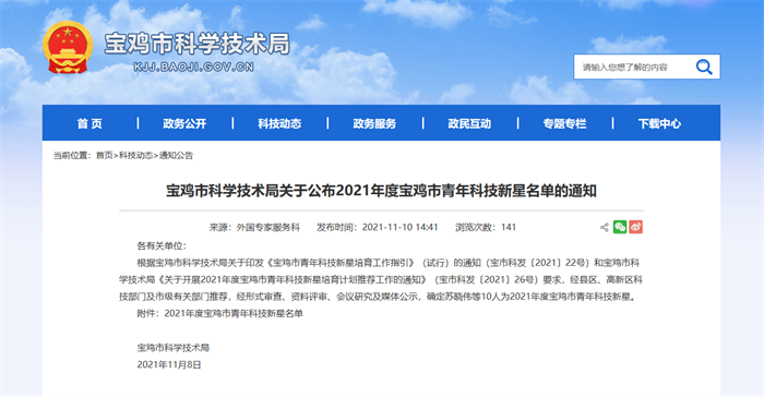 寶雞市科學(xué)技術(shù)局開展2021年度寶雞市青年科技新星培育計(jì)劃推薦工作旨在深入實(shí)施創(chuàng)新驅(qū)動(dòng)發(fā)展戰(zhàn)略,加快促進(jìn)科技、金融、產(chǎn)業(yè)、人才有機(jī)結(jié)合,培育我市高質(zhì)量發(fā)展急需的優(yōu)秀青年科技人才隊(duì)伍。